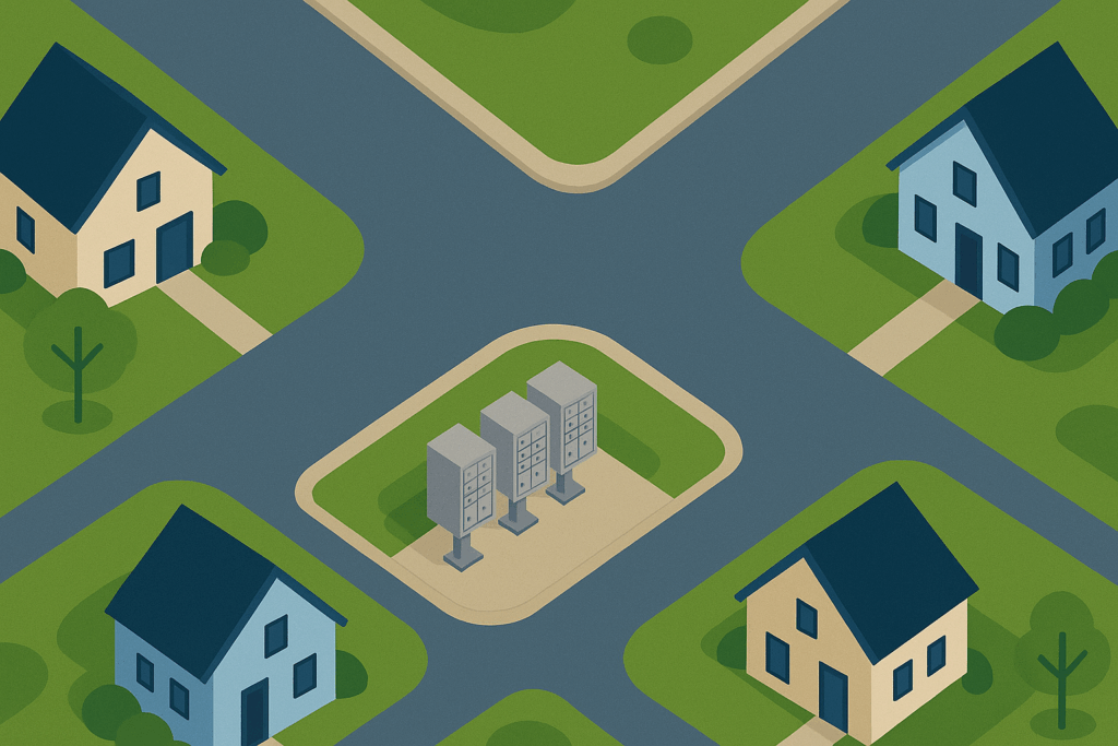 Centralized delivery through CBUs or kiosk units is the most common system in new developments due to cost efficiency and security. These units are placed in central locations and are designed to serve multiple homes.