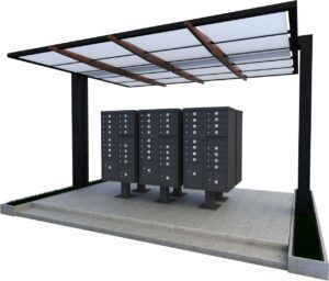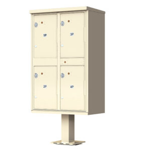 Traditional CBUs are freestanding, pedestal-mounted units used by the U.S. Postal Service (USPS) as the standard for centralized mail delivery. Each unit includes multiple locking mail compartments, one or more parcel lockers, and an outgoing mail slot.